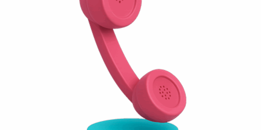 Telefone rosa retrô em base azul.